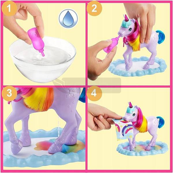 Ta księżniczka Barbie Dreamtopia z jednorożcem jest inspirowana lalką Barbie, jej jednorożcem i magiczną funkcją zmiany koloru, która zapewnia opiekę nad dziećmi i bajkową zabawę! Inspirowana chmurami i tęczami bajkowa stajnia to idealne miejsce, w którym Barbie może zaopiekować się swoim jednorożcem. Dzieci mogą napełnić butelkę wodą, zanocować małego jednorożca i pomóc lalce Barbie nakarmić swojego zwierzaka. Kiedy mały jednorożec „robi”, kolor nocnika zmienia się z białego na tęczowy! Gdy powierzchnia wyschnie, zabawa w wyobraźnię może rozpocząć się od nowa. Inne akcesoria to koryto i przekąski, szczotka do włosów dla lalki Barbie, szczotka do pielęgnacji jej jednorożca i 10 akcesoriów do włosów, które ułatwiają opowiadanie historii i stylizację. Dzięki magicznej funkcji zmiany koloru i licznym akcesoriom ta Barbie Dreamtopia Princess z jednorożcem to idealny prezent dla dzieci w wieku od 3 do 7 lat. Lalka nie może stać sama.