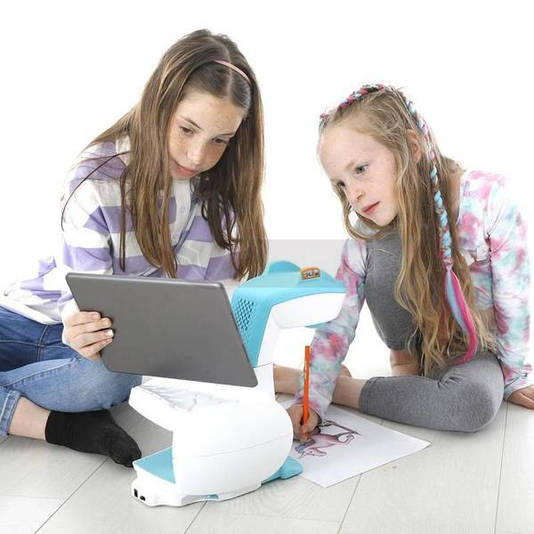 Smart Sketcher Projector 2.0 - Odkrywanie artystycznych talentów to świetna zabawa Czy Twoje dziecko lubi rysować ? Innowacyjny Projektor Smart Sketcher 2.0 został stworzony, by wspomóc dziecko w odkrywaniu talentu plastycznego. Niezawodne urządzenie w zupełnie nowej wersji posiada aż 60 wbudowanych grafik, które staną się inspiracją do tworzenia niezwykłych prac. To nie wszystko. Projektor wydaje dźwięki, imitujące odgłosy rysowanej postaci/zwierzęcia/przedmiotu oraz wspomaga naukę języka angielskiego. Wystarczy przeliterować słowo i zacząć tworzyć. Czy powstający na papierze piesek zaczął szczekać? Wyzwól w dziecku chęć tworzenia z nowym Smart Sketcher. Charakterystyka produktu: Producent projektora Smart Sketcher gwarantuje bezpieczeństwo użytkowania przez najmłodszych. Każdy element zabawki wykonano z należytą precyzją, z atestowanych materiałów. Podstawa projektora w nowym kształcie wysuwanych nóg jest stabilna i odporna na uszkodzenia. Pierwsze uruchomienie będzie wymagało pomocy osoby dorosłej. Smart Sketcher Projector w najnowszej odsłonie jest zabawką, która działa niezawodnie i wygląda bardzo nowocześnie. Kolorowa stylistyka sprawia, że ulepszony projektor doskonale prezentuje się w dziecięcym królestwie. Odkrywaj swoje możliwości dzięki zaawansowanej zabawce, wspomagającej ćwiczenie prowadzenia linii na papierze, skupienie i wyobraźnię – a to nie wszystko! Smart Sketcher przez zabawę i skojarzenia uczy dziecko języka angielskiego w przystępny i miły sposób. Dzięki ćwiczeniom pisania w języku angielskim, zamienia słowo w niezwykłą ilustrację, która zapada w pamięć twojemu dziecku. Urządzenie wykonane zostało z wysokiej jakości elementów, tworzących niezawodnie działającą zabawkę. Posiada trwałą kartę SD oraz schowek na karty SD. Projektor uzyskał liczne certyfikaty oraz nagrody, za którymi kryje się gwarancja jakości. Jak działa Smart Sketcher Projector? Naukę rysowania poprzez wspaniałą zabawę z dźwiękami rozpocznij od pobrania bezpłatnej aplikacji z Google Play lub App Store. Wybierz jedną z sześćdziesięciu możliwości rysowania! Wśród dostępnych w aplikacji lub na swoim urządzeniu ilustracji wybierz tę, którą chcesz narysować i umieść kartkę papieru pod wysięgnikiem projektora. Można zaczynać! Coś specjalnego dla kreatywnych Smart Sketcher wyzwala w dzieciach kreatywność. Aby stworzyć swój własny projekt, wystarczy wybrać obrazek, dostępny w aplikacji lub w urządzeniu i zastosować wybrane filtry. Twórz bez ograniczeń