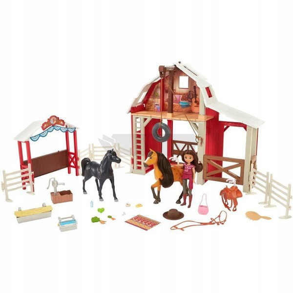 Bądź częścią przyjaźni, odwagi, przygody z animowanym filmem Spirit Untamed od DreamWorks! Doświadcz przyjaźni, odwagi i przygody z postacią z kreskówek Spirit z DreamWorks Spirit Zestaw Spirit Deluxe Horse Farm zawiera pełne wrażenia z zabawy i jest idealny do ćwiczenia karmienia, szczotkowania i opieki nad końmi. Zestaw zawiera lalkę Lucky (ok. 17,78 cm) oraz figurkę konia Spirit (ok. 20,32 cm) z cudownym efektem długiej grzywy i zmiany koloru, czarnego konia (ok. 20,32 cm), dużą stajnię z huśtawką z opon , który służy również jako winda, zewnętrzny padok z korytem i koszem, funkcjonalna pompa wodna do aktywacji funkcji zmiany koloru Spirita, ogrodzenie i wiele elementów do zabawy na pomysłowe historie! Place zabaw w ośrodku jeździeckim obejmują stajnię, świetlicę, huśtawkę z oponami, miejsce do karmienia i opieki oraz pompę wodną; Na wybiegu treningowym, który można połączyć ze stajnią ogrodzeniem, znajduje się karmnik i kosz. Inne akcesoria to dodatkowe koryto, które zamienia się z koryta w koryto z wodą, szczotka do włosów i szczotka dla koni, grzebień do curry, 2 przekąski marchewkowe jako smakołyki dla koni, bidon, czapka, torebka i wiele innych. Dzięki temu luksusowemu zestawowi do zabawy jeździeckiej dzieci będą zachwycone odtwarzaniem swoich ulubionych scen z filmu i wymyślaniem nowych przygód! Świetny prezent dla dzieci od 3 roku życia.