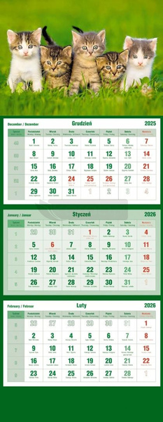 Główka pełnokolorowa, okienko przesuwane, nazwy miesięcy i tygodni w wersjach językowych, miejsce na nadruk reklamowy.