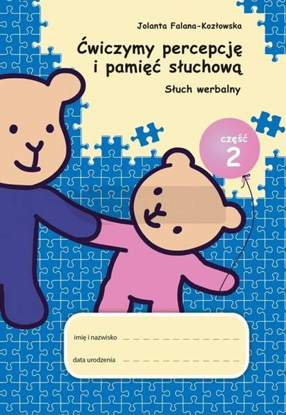 Program ćwiczeń percepcji i pamięci słuchowej adresowany jest do dzieci od 2 roku życia, u których występują problemy z mówieniem oraz dzieci ryzyka okołoporodowego zagrożonych dysleksją. Program ten może zostać wykorzystany również do ogólnej stymulacji rozwojowej dziecka. Celem opracowania powyższego bloku jest zebranie dostępnych materiałów i ćwiczeń w formę uporządkowaną i gotową do pracy terapeutycznej od ćwiczeń najłatwiejszych do najtrudniejszych. Percepcja słuchowa to zdolność do rozpoznawania i rozróżniania bodźców słuchowych, a także do ich interpretowania przez odniesienie do poprzednich doświadczeń. W zakresie percepcji słuchowej wyróżniamy umiejętność różnicowania bodźców awerbalnych i werbalnych. Materiał w poradnikach jest uporządkowany w oparciu o zasadę stopniowania trudności. Zawiera przykładowe zestawy ćwiczeń, które mogą być wzorem i impulsem dla terapeuty. Przedstawione ćwiczenia nie wyczerpują możliwości pracy z dzieckiem, a więc nie ograniczają kreatywności osoby prowadzącej terapię. Zeszyt drugi zawiera ćwiczenia słuchu werbalnego, które są przeznaczone dla dzieci starszych posiadających już ukształtowaną podstawową świadomość fonetyczno-fonologiczną. Drugi zeszyt ćwiczeń przeznaczony jest do pracy nad słuchem werbalnym. Ćwiczenia te wiążą się już ściśle z mową, obejmując wydzielanie wyrazów w zdaniu, sylab i głosek w wyrazach. Stanowią one przygotowanie do nauki czytania i pisania.