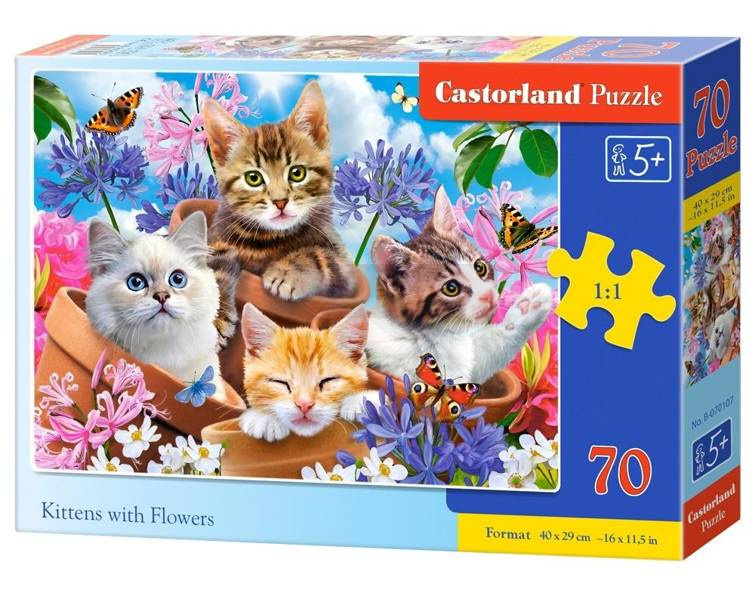 Puzzle 70 elementowe - duży format elementów. Doskonała forma treningu zdolności koncentracji, spostrzegawczości i wytrwałości, a także świetna zabawa dla młodych miłośników układania puzzli. Cząstkowe sukcesy są źródłem satysfakcji, która motywuje dziecko w dążeniu do zamierzonego celu. Produkt dedykowany jest dla dzieci w wieku przedszkolnym i wczesnoszkolnym. Puzzle te to pomysł na efektowny, niedrogi, a zarazem bardzo udany prezent.