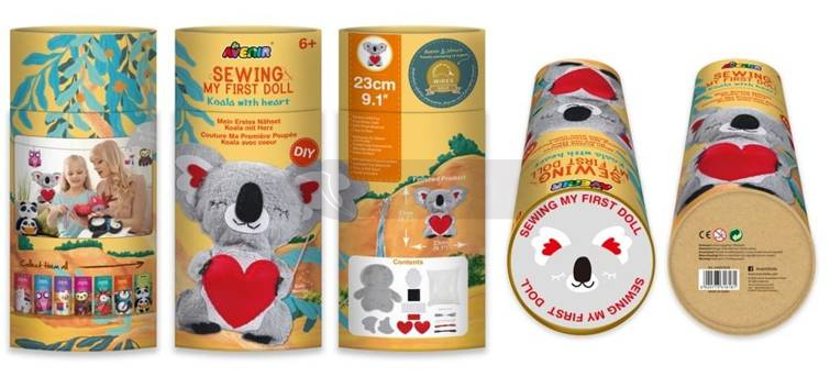 Uszyj swoją pierwszą maskotkę- uroczą Koalę z czerwonym serduszkiem, postępując zgodnie z prostymi instrukcjami. Wiek:6+, Wymiary uszytego produktu: 23x 23 cm.