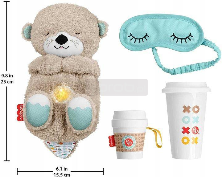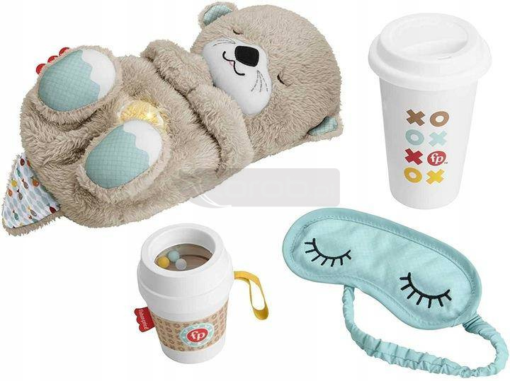 Zestaw prezentowy Słodki odpoczynek od Fisher-Price to idealny upominek dla malucha i rodzica – aby podarować chwilę radosnej zabawy i odpoczynku! Oprócz dwóch zabawek dla dziecka zawiera także dwa upominki dla rodziców. Rodzic może dobrze zacząć dzień dzięki ceramicznemu kubkowi na napoje, a maluch dzięki gryzaczkowi bez bisfenolu w kształcie kubka kawy. Gdy nadejdzie czas na relaks, rodzic może odprężyć się z opaską na oczy, a mięciutka Wydra Usypianka-Przytulanka uspokoi dziecko delikatnymi dźwiękami, muzyką i ruchem „oddychania”. OPIS WYDRY: Wydra Usypianka-Przytulanka Oddychający uspokajacz od Fisher-Price to wyjątkowa pluszowa przytulanka, która uspokoi Twoje dziecko. Jej miękki brzuszek rytmicznie podnosi się i opada jak przy oddychaniu, co w naturalny sposób koi maluszka. Zabawka odtwarza też 30 minut uspokajającej muzyki i innych dźwięków (takich jak bicie serca, słodkie pochrapywanie czy biały szum) oraz świeci delikatnym światełkiem. Dzięki słodkiemu pyszczkowi, miękkiemu materiałowi i milutkiemu ogonkowi oddychająca wydra to idealna zabawka do spania dla Twojej pociechy. Wiek od urodzenia. OPIS GRYZACZKA KUBECZKA KAWY: Dzięki temu uroczemu gryzakowi w kształcie kubka do kawy maluch może naśladować czynności dorosłych, bawiąc się i rozwijając jednocześnie! Miękka, idealna do żucia pokrywka doskonale sprawdzi się w przypadku ząbkujących dzieci, a kolorowe kuleczki grzechotki wydają atrakcyjne dźwięki przy potrząsaniu nią. Wygodna pętelka z tkaniny umożliwia łatwe chwytanie zabawki. Zabawa, która rozwija: zręczność: starając się chwycić kubeczek i bawiąc się nim, dziecko rozwija swoje umiejętności motoryczne. zmysły: zabawne grzechotanie, idealna do gryzienia pokrywka oraz miękki materiał stymulują rozwijające się zmysły dziecka. Wiek od 3 miesięcy.