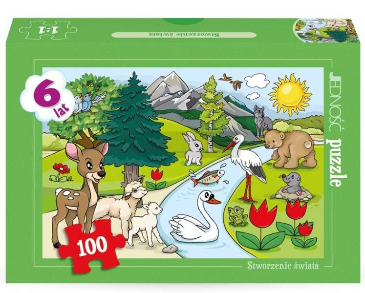 Puzzle składają się ze 100 elementów i spakowane są w praktyczne pudełko. Po ułożeniu powstanie duży, kolorowy obrazek o wymiarach 41 x 27,5 cm