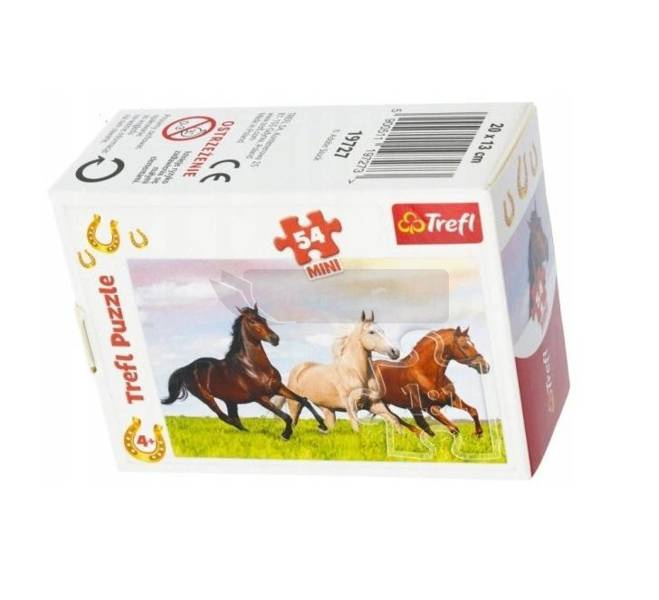 Układanka Świat koni w wygodnym pudełeczku, które swobodnie zmieści się w dziecięcym plecaczku i na półce z zabawkami.