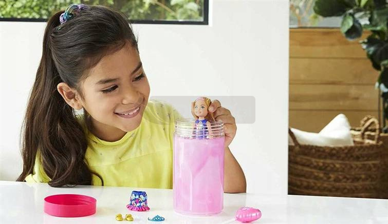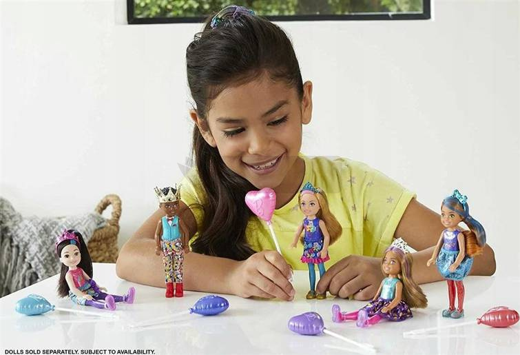 Poczuj magię swojej ulubionej lalki, jakiej nigdy wcześniej nie widziałeś! Odkryj niespodzianki lalki Mattel Barbie Chelsea Color Reveal w wersji imprezowej! Najnowsza seria lalek Barbie Chelsea, które są gotowe na wspaniałą imprezę! Lalki Barbie Chelsea Color Reveal inspirują od razu po rozpakowaniu i zawierają aż siedem niespodzianek. Każda lalka ma na sobie jaskrawy strój imprezowy, który zostanie ujawniony dopiero później. Rozpakowywanie jest również zabawne: wystarczy pociągnąć za zakładkę, aby wyjąć zewnętrzne opakowanie i odsłonić przezroczysty pojemnik. Wewnątrz znajduje się srebrzysta lalka Color Reveal z kolorowym nadrukiem konfetti oraz cztery woreczki-niespodzianki. Wyjmij wszystko i napełnij pojemnik wodą, a następnie zanurz lalkę w wodzie i obracaj ją tam i z powrotem. Woda zamienia się w metaliczne srebro, a wokół wirują kolorowe konfetti - a po zdjęciu lalki ujawnia się jej wygląd. Każda lalka ma inną kombinację koloru oczu, fryzury, karnacji, błyszczącego topu i wymodelowanych brokatem nóg . A niespodzianek jest jeszcze więcej: w torebkach znajdziemy spódniczkę z falbanami, parę butów, błyszczącą tiarę i kolorowy, imprezowy balonik. Efekty zmiany koloru na włosach, powiekach i ustach lalki dodają dodatkowego efektu wow.