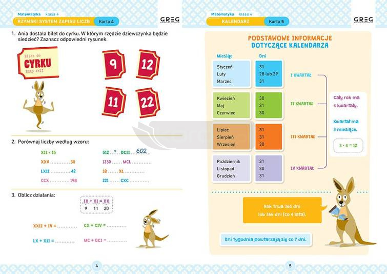 Zadania są zgodne ze wskazówkami metodycznymi dotyczącymi nauczania matematyki w szkole podstawowej i obejmują pełen zakres materiału przewidziany w podstawie programowej dla klasy czwartej, a przy tym ich różnorodność sprawia, że uczniowie chętnie pracują z tą książką.