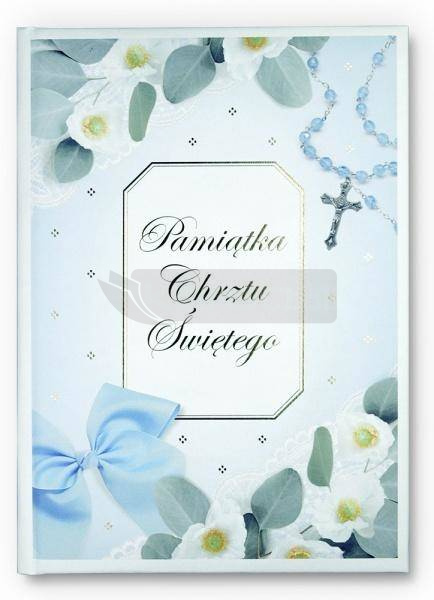 Książeczka okolicznościowa z okazji chrztu świętego. Twarda okładka ze złotą folią.
