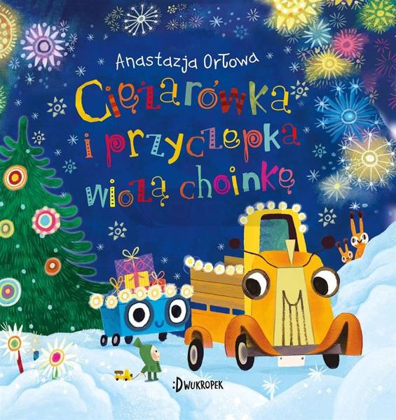 BI BIIP. Na plac wjeżdża ciągnik z lampą sygnalizacyjną. Wszyscy rozstępują się na boki. Za ciągnikiem jedzie ciężarówka z przyczepką. Wiozą choinkę. Czerwona szmatka łopocze na wietrze: FRR, FRR! A za nimi jedzie tir z prezentami.