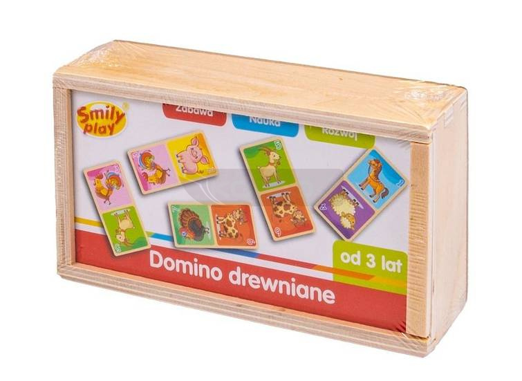 Gra domino dla najmłodszych w wersji drewnianej, obrazkowa farma.