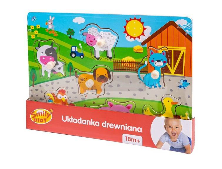 Puzzle mają duże uchwyty, które dziecko może wygodnie chwytać i układać w odpowiednich dla nich miejscach.