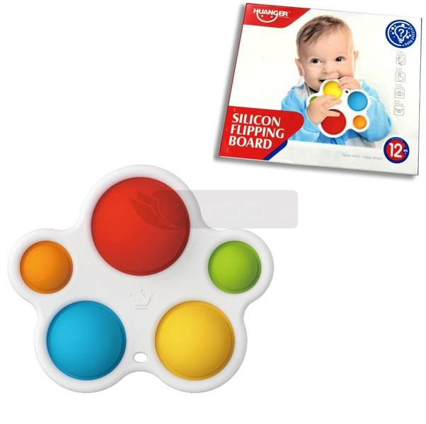 Kolorowe kółeczka w plastikowej ramce umieszczone jest 5 silikonowych krążków w podstawowych kolorach.