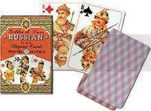 Najwyższej jakości karty do gry renomowanej firmy Ferd. Piatnik & Sohne. Na awersach oryginalne rosyjskie figury, piękne asy i jokery, rewersy symetryczne. Talia składa się z 55 plastikowanych kart o wymiarach 58 x 89 mm i gramaturze 310. Idealna zarówno do brydża, pokera, remika jak i innych gier. Wyroby wiedeńskiej fabryki Ferd. Piatnik & Sohne od 1824 roku urzekają bogactwem wzorów i perfekcją wykonania. Jakość i tradycja!