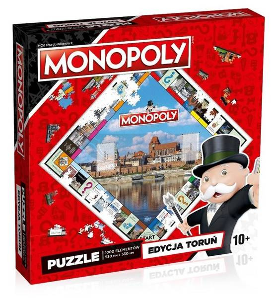 Wygrywasz w grze MONOPOLY Toruń bez mrugnięcia okiem? Spróbuj ułożyć planszę z puzzli! 1000 kawałków układanki przedstawia najważniejsze miejsca Torunia wraz z doskonale znanymi polami MONOPOLY. Układasz zarówno szansę i start, jak i Krzywą Wieżę, Uniwersytet Mikołaja Kopernika oraz Dwór Artusa. Po dołożeniu ostatniego puzzla nie zapomnij o powieszeniu plakatu, który Pan Monopoly dorzuca gratis!