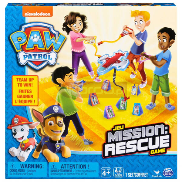 Wszystkie łapy na pokład! Kiedy przychodzi pora na misję ratunkową, praca zespołowa jest kluczem do sukcesu. Teraz możesz wspólnie z pieskami z Psiego Patrolu przeżywać niesamowite przygody i misje ratunkowe. Gracze podłączają się do Samolotu Patrolowca i poruszają się podłodze, gdzie rozgrywana jest gra. Muszą ze sobą współpracować, żeby zebrać jak najwięcej scen ratunkowych, a następnie upuścić je w ustalonej bezpiecznej strefie. Zagraj w tę ekscytującą grę z ulubionymi postaciami Psiego Patrolu, takimi jak Chase, Marshall, Rocky i resztą piesków z Zatoki Przygód.