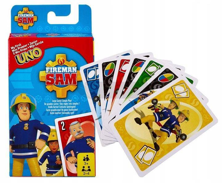 Popularna gra UNO junior w wersji ze Strażakiem Samem Uno to szybka i przyjemna gra przy której nie sposób się nudzić! Podobnie jak w klasycznej wersji, w edycji Uno Strażak Sam gracze próbują jak najszybciej pozbyć się swoich kart, ale dodatkowo mają do dyspozycji karty z bohaterami i obrazkami z bajki o Strażaku Samie. Celem gry jest dopasowanie karty trzymanej w ręku do karty aktualnie odkrytej na górze stosu i zdobycie punktów za wszystkie karty, które pozostaną w rękach innych graczy.