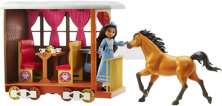 Bądź częścią przyjaźni, odwagi, przygody z animowanym filmem Spirit Untamed od DreamWorks! Doświadcz przyjaźni, odwagi i przygody z postacią z kreskówek Spirit z DreamWorks Spirit Zestaw Pociąg Lucky zawiera piękną lalkę (około 18 cm) ubraną w piękną, niebieską sukienkę z pasującą torebką oraz opaską na włosy. Jej koń Spirit ma wysokość około 20 cm. Zabaw się w podróżowanie uroczym pociągiem, który ma cztery obracające się koła, balkon, cztery miejsca siedzące oraz stół, który służy do podania herbaty podczas zabawy. Dzieci mogą przechowywać czajniczek i trzy kubki na półce w pociągu, jest też haczyk do zawieszenia torebki Lucky. Dzieci będą zachwycone odgrywaniem niezapomnianych chwil z filmu dzięki zestawowi Pociąg Lucky. Jest to świetny prezent dla dzieci w wieku od 3 lat, zwłaszcza tych, które cenią sobie przyjaźń, modę i podróże
