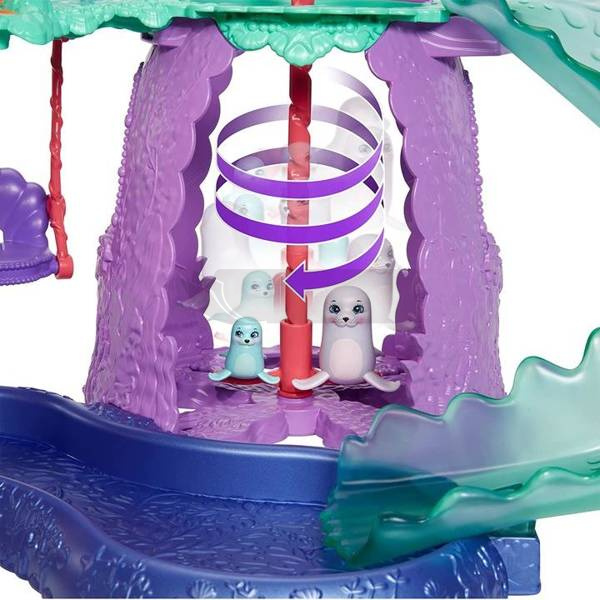 Daj się zaczarować tym słodkim dziewczynkom i ich zwierzątkom! Enchantimals™ to grupa uroczych dziewczynek związanych ze swoimi ukochanymi zwierzątkami wyjątkową więzią – nie tylko nie odstępują od siebie na krok, lecz także wyglądają podobnie! Do wyboru lalki Enchantimals™ i ich zaprzyjaźnione, dopasowane tematycznie zwierzątka. Witamy w Parku wodnym Enchantimals™! Zanurz się w świecie zabawy z lalką Shayda Sea Lion™ (15 cm), figurką zwierzątka Catch™ i ich morskimi przyjaciółmi. Z przyjaciółmi Enchantimals™ czeka Cię mnóstwo niezapomnianej zabawy. Zestaw ma 29 cm wysokości i 43 cm szerokości .W zestawie znajduje się basen, zjeżdżalnia, huśtawka, obrotowy słupek i wiele innych elementów – zestaw Park wodny Enchantimals™ wręcz tryska wyśmienitymi pomysłami na zabawę. Nalej wody, aby zrobić plusk! Odkryj mnóstwo wodnej zabawy z akcesoriami takimi jak zabawki basenowe, krzesełko i nie tylko, które zachęcają do wymyślania własnych opowieści. To idealny prezent dla dzieci od 4 roku życia, szczególnie tych, które kochają zwierzęta!
