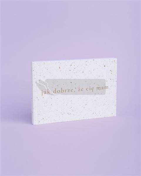 Książeczka o Tobie jak dobrze, że cię mam to kreatywny sposób na wyrażenie ciepłych uczuć i myśli względem Twoich najbliższych przyjaciół, i wszystkich osób, które wiele dla Ciebie znaczą. Nie każdy z nas ma w sobie na tyle odwagi, aby powiedzieć przyjacielowi, ulubionej koleżance czy komuś, kto jest nam niezwykle bliski coś miłego, tak wprost z głębi serca. Aby ułatwić to zadanie, stworzyliśmy nową odsłonę Książeczki o Tobie, która urzeknie minimalistyczną formą i pozwoli przenieść na papier wszystkie dobre myśli względem bliskiej osoby. Ta wyjątkowa edycja dopełniona jest specjalna okładką wykonaną z dodatkiem fragmentów kawy, z którą całość zyskuje niepowtarzalny charakter. Książeczka o Tobie jak dobrze, że cię mam wyraź wszystko to co najważniejsze i obdaruj bliską Ci osobę niepowtarzalnym upominkiem Książeczka o Tobie jak dobrze, że cię mamto kompozycja pięknych myśli i zwrotów, które uzupełnione Twoimi inspirującymi puentami, staną się niezwykłą opowieścią o bliskiej Ci osobie. Wraz z Książeczką wyrazisz wszystkie skryte uczucia, którymi darzysz najbliższą Twemu sercu osobę. Dzięki niej z pewnością jeszcze bardziej zbliżycie się do siebie.