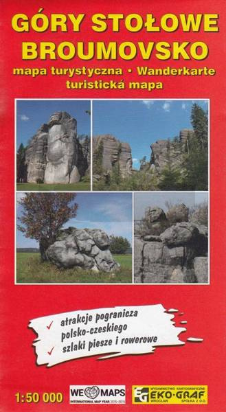 Mapa turystyczna obejmująca obszar Broumovska oraz Gór Stołowych. Na stronie 2 umieszczono mapy Adrpako-Teplickich Skał, Szczelińca Wielkiego i Błędnych Skał a dodatkowo plany Nachodu, Trutnova, Kudowy-Zdrój, Duszników-Zdrój i Polanicy-Zdrój. Ponadto opis krajobrazowy w wersji czeskiej, niemieckiej i polskiej.