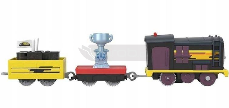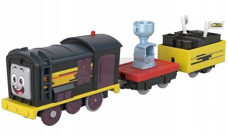 Tomek i Przyjaciele Zestaw obejmuje zmotoryzowaną lokomotywkę z wagonem towarowym. Przeżyj ekscytujące przygody Tomka i przyjaciół z tym zabawkowym pociągiem na baterie. Młodzi kierowcy mogą przełączyć przełącznik na górze lokomotywki, aby wysłać Diesla na wyścigi Ten zmotoryzowany zabawkowy pociąg jest kompatybilny z innymi torami Tomka i Przyjaciół, z wyjątkiem drewna (zestawy torów są sprzedawane osobno). Silnik jest wyposażony w plastikowe złącza do mocowania innych silników pchających lub zmotoryzowanych, pojazdów, samochodów towarowych lub płynów (każde sprzedawane osobno i w zależności od dostępności) Zestaw ten jest kompatybilny z zestawami torów i pociągów TrackMaster .