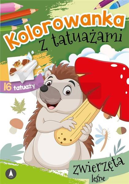 W środku: projekty do kolorowania i zestaw zmywalnych tatuaży (wzory kolorystyczne).