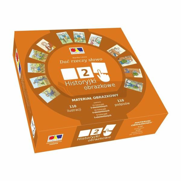 "Dać rzeczy słowo. Historyjki obrazkowe 2" - to kolejny zestaw historyjek obrazkowych do ćwiczeń językowych dla dorosłych i dzieci. Pomoc zawiera 110 ilustracji przedstawiających scenki z życia codziennego (10 historyjek 3-elementowych, 10 historyjek 4-elementowych i 8 historyjek 5-elementowych) oraz podpisy do wszystkich obrazków.