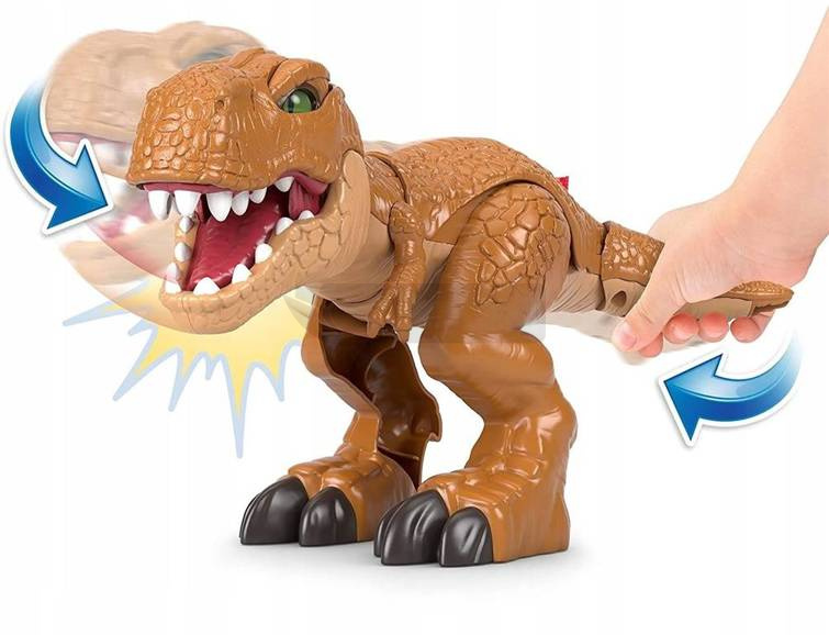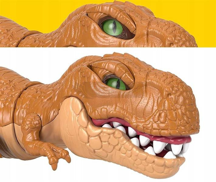 Przygotuj się na wartką akcję i przygody wprost ze świata Jurassic World! Dzięki figurce dinozaura T-Rex dzieci mogą tworzyć przygody Jurassic World z niesamowitą akcją. Przesuń przycisk znajdujący się na grzbiecie dinozaura, aby zmienić jego oczy ze spokojnych na złe. Poruszaj ogonem z boku na bok, aby zobaczyć, jak jego głowa się rusza. Poruszaj ogonem w górę iw dół, aby zmienić pozycję dinozaura Dla dzieci od 3 do 8 lat