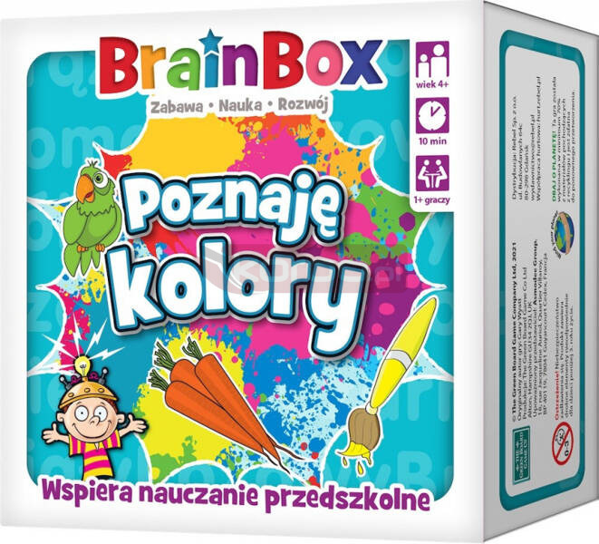 Szukasz gry, która pozwoli Ci spędzić z dzieckiem wartościowy czas, a jednocześnie będzie wspierać jego rozwój już w okresie przedszkolnym? BrainBox - Poznaję kolory to coś dla Ciebie! Ta rodzinna gra zabierze młodsze i starsze umysły w ekscytującą podróż pełną ciekawych odkryć rozwijających spostrzegawczość i pamięć. Na 24 kartach znajdziesz czarne koty, kolorowe rośliny, a nawet pysznie wyglądające słodycze, które pomogą maluchom w nauce rozpoznawania i nazywania barw.