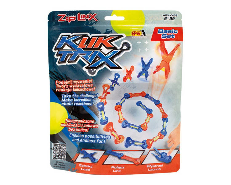 KlikTrix to mnóstwo elementów, które można ze sobą łączyć, tworząc z nich widowiskowe aranżacje i wybuchowe sceny. To zabawa na zasadzie reakcji łańcuchowej / efektu domina. Produkt charakteryzuje dbałość o detale, jakość i precyzja wykonania.
