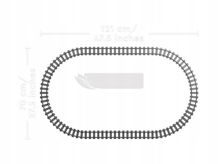 24 elementy torów kolejowych — w zestawie LEGO® City Ekspresowy pociąg pasażerski znajduje się 16 torów łukowatych i osiem torów prostych
