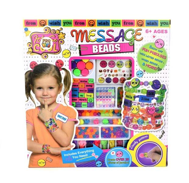 Kreatywny zestaw do tworzenia bransoletek zawiera 8 rodzajów koralików do nawlekania i naklejki. W ten sposób dziewczynka stworzy niepowtarzalną biżuterię dla siebie i swoich przyjaciółek. Wielokolorowe kryształki i koraliki z emotkami i napisami to idealny sposób na kreatywne spędzanie czasu. Nawlekanie koralików ćwiczy także motorykę i poprawia umiejętności manualne.