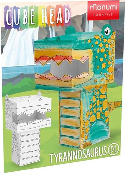 Cube head. Dino. Tyranozaur. Złóż i pokoloruj