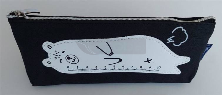 Piórnik z naszywką misia z linijką, zamykany na zamek. Doskonale nadaje się do szkoły.