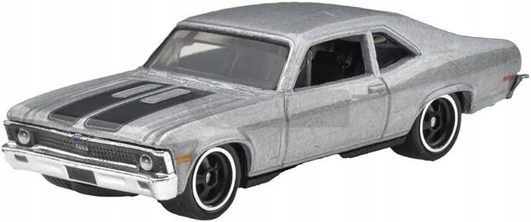 Hot Wheels Premium Samochodziki Hot Wheels z serii Fast & Furious HCP14 '70 Chevrolet Nova SS Fast & Furious™ to pełna akcji globalna seria filmowa oparta na szybkości, przyspieszonych wyczynach kaskaderskich i superdoładowanych samochodach. Kolekcja Fast & Furious™ w skali 1:64 oferuje ekscytujące kolory i przyciągające wzrok projekty. Szczegóły i grafika są stylowe i wierne serii Fast & Furious™ Idealny dla kolekcjonerów, entuzjastów samochodów i fanów Fast & Furious™! Podkręć emocje kolekcją pojazdów Hot Wheels® inspirowanych serią Fast & Furious™. Każdy doładowany pojazd w skali 1:64 jest gotowy do akcji zaraz po wyjęciu z opakowania! Rozbudź ich potrzebę szybkości i rywalizacji dzięki tej kultowej kolekcji! Stylowe dekory tych wielkoekranowych replik są idealne do zabawy lub wyświetlania. Fani wyścigów ulicznych, muscle carów, ciężarówek, czołgów i zwolennicy fenomenu Fast & Furious™ będą chcieli zebrać je wszystkie! Hot Wheels® Fast & Furious™ Kolekcja pojazdów w skali 1:64 z Fast Films Zawiera 1 samochód Hot Wheels® w skali 1:64.