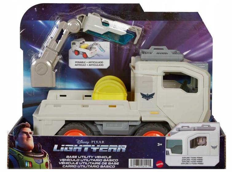 Odkryj Lightyear Disneya i Pixara. Uwięziony na niezbadanej planecie Buzz Lightyear i jego członkowie załogi będą musieli walczyć z wrogimi roślinami, gigantycznymi robakami i ostatecznym zagrożeniem, Zurgiem, aby ukończyć misję i wrócić do domu. Ten podstawowy pojazd użytkowy jest inspirowany ciężarówką, która transportuje Buzza i drużynę po nieprzyjaznym terenie T'Kani Prime. Koła toczą się, a drzwi otwierają się, więc ten pojazd naziemny jest gotowy do odtworzenia ekscytujących scen z filmu, wyobrażenia sobie nowych lub wyśrodkowania dramatycznego pokazu Astral. Odłączana koparka laserowa jest gotowa do ciężkich prac terenowych i ma dwa obszary przechowywania. Ta 27 cm ciężarówka może pomieścić cały czteroosobowy zespół 13 cm figurek Buzza, zapewniając wspaniałe możliwości fabuły. Fani mogą odtworzyć emocje związane z bitwą, lotem i eksploracją oraz tworzyć dramatyczne pokazy Astral.