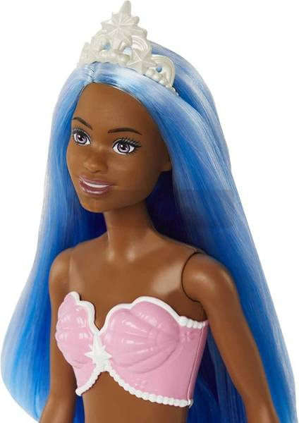 Przeżywaj podmorskie przygody z lalkami syrenkami z linii Barbie Dreamtopia o królewskim, tęczowym wyglądzie. Lalka syrenka Barbie ma piękny turkusowy top, półprzezroczystą płetwę i piękny ogon z efektem ombre i muszelkami. Długie, fioletowe włosy i królewska tiara uzupełniają magiczną stylizację lalki syrenki Barbie. Dzieci mogą opowiadać własne historyjki – zginać lalkę Barbie w pasie, aby „pływała” w morzu, albo posadzić ją w blasku słońca! Dzięki żywym kolorom i fantastycznym szczegółom lalki syrenki z linii Barbie Dreamtopia będą świetnym prezentem dla dzieci od 3 roku życia.