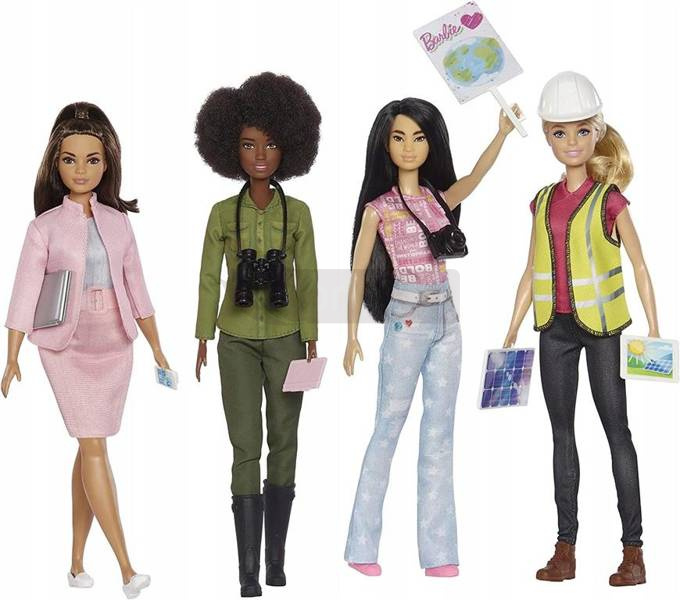 Poznaj świat nauki o środowisku i zrównoważonym rozwoju z Barbie Eco-Leadership Team! Ten zestaw kariery zawiera 4 wyjątkowe lalki, które są dostarczane z ubraniami i akcesoriami związanymi z karierą: naukowiec ds. ochrony przyrody, inżynier ds. energii odnawialnej, dyrektor ds. zrównoważonego rozwoju i rzecznik ds. środowiska. Ten zestaw 4 lalek jest wykonany z plastiku pochodzącego z recyklingu (z wyjątkiem głowy i włosów), nosi ubrania wykonane z materiału pochodzącego z recyklingu i jest certyfikowany jako produkty neutralne pod względem emisji dwutlenku węgla. Konserwator nosi zieloną koszulę i spodnie, ma też lornetkę i notatnik. Bada i podejmuje działania na rzecz zrozumienia i ochrony lasów, parków, pastwisk i ważnych zasobów naturalnych. Inżynier ds. energii odnawialnej nosi mundur z kaskiem ochronnym i kamizelką odblaskową oraz jest wyposażony w panel słoneczny i tablet. Wspiera wykorzystanie zrównoważonych form energii, takich jak energia słoneczna, wiatrowa, geotermalna czy wodna. Chief Sustainability Officer ma na sobie różowy garnitur i jest wyposażony w laptopa i telefon komórkowy. Współpracuje z firmą lub organizacją, aby upewnić się, że ich działania i produkty są zrównoważone ekonomicznie, środowiskowo i społecznie. Rzecznik Ochrony Środowiska ma na sobie dżinsy i koszulkę z grafiką, a także aparat i znak. Podejmuje kreatywne działania na rzecz rozwiązywania problemów społecznych i środowiskowych w społecznościach i na całym świecie. To świetny prezent dla dzieci w wieku 3 lat i starszych, zwłaszcza dla tych, którzy kochają środowisko i chcą, aby planeta była szczęśliwszym i zdrowszym miejscem.