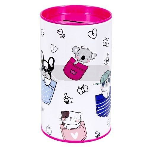 Pojemna skarbonka metalowa okrągła z lakierowanego metalu z otwieranym wieczkiem, która także sprawdzi się jako pojemnik na niezbędne przybory na twoim biurku. Skarbonka to idealny pomysł na prezent, który uczy oszczędności i sprawia, że pieniądze są bezpieczne. Skarbonka jest zdobiona nadrukiem w urocze Minisy.