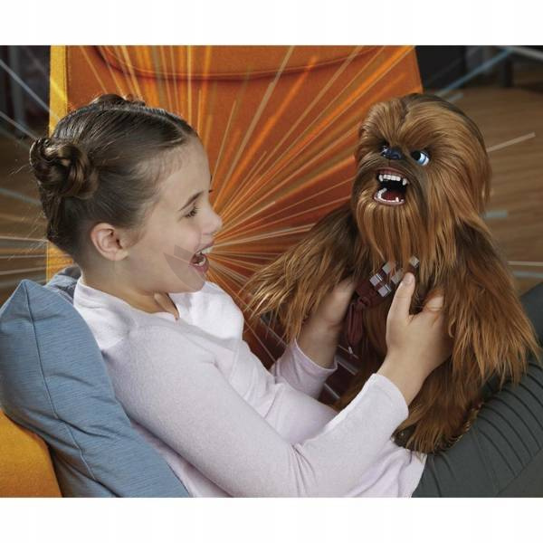 Witamy w futrzastym świecie zwierzątek Fur Real. Chewbacca („Chewie” dla swoich najlepszych kumpli) jest znany jako lojalny przyjaciel i drugi pilot Hana Solo. Teraz figurka najlepszego drugiego pilota Chewiego może być zaufanym towarzyszem przygód dzieciaków, gdziekolwiek zaprowadzi ich wyobraźnia! Ten niesamowity interaktywny pluszowy przyjaciel ma ponad 100 kombinacji dźwięku i ruchu, reaguje w języku Wookiee i reaguje, gdy jest w ruchu - czasami w zaskakujący sposób! Dzieci pokochają zabawną minę ich ulubionego Wookiee i sposób, w jaki reaguje, gdy z nim rozmawiają (śmieje się, ryczy, a nawet chrapie!). Często podnosi ręce, gdy ryczy ... i wydaje zadowolone dźwięki, gdy dostaje przyjazne zadrapanie po głowie. Ten futrzany najlepszy przyjaciel jest zawsze gotowy do następnej misji, dużej lub małej!