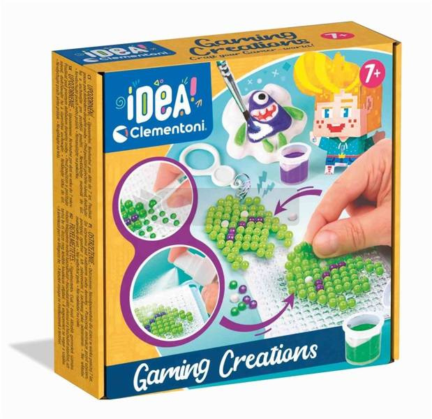 Zestaw zawierający wiele materiałów do tworzenia różnych zabawnych kreacji inspirowanych światem gier wideo: zestawy aquabeads, naklejki dekoracyjne, zawieszki na breloczki i wiele innych.