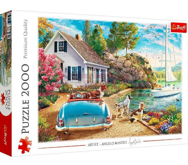 Puzzle składające się z 2000 elementów przedstawiające słoneczną, wakacyjną przystań. Po ułożeniu powstanie obraz o wymiarach 96,1 x 68,2 cm.