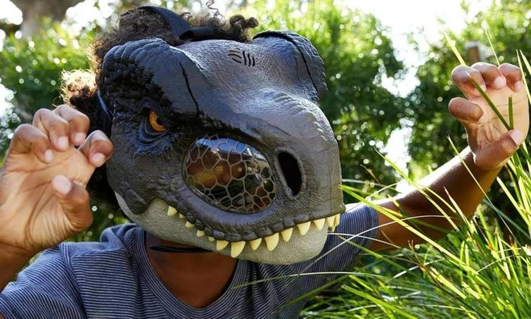 Przygotuj się na wartką akcję i przygody wprost ze świata Jurassic World! Przygotuj się na ekscytującą akcję i przygodę z Jurassic World Dominion! Jurassic World Dominion wraca z przygodą i dreszczykiem emocji dzięki tym maskom kostiumowym do zabawy w dinozaury Każda maska ??jest inspirowana dinozaurem z filmu, w tym niektóre wprowadzone w Jurassic World: Dominion Realistyczne odgrywanie ról! Maski zawierają autentyczne jak z filmu i realistyczne szczegóły, takie jak tekstura skóry, kolor i zęby, dzięki czemu dzieci mogą stać się ulubionymi dinozaurami! Otwórz szczękę i CHOMP! Dzieci mogą ponownie przeżyć akcję filmową lub stworzyć własny chaos z dinozaurami! To idealny prezent dla dzieci w wieku od 4 lat, zwłaszcza fanów Jurassic World i tych, którzy kochają dinozaury, zabawy w kostiumy i kreatywne przygody! Maska T-Rex ma także ruchomą szczękę. Gdy paszcza tej elektronicznej maski otwiera się coraz szerzej, dziecko usłyszy coraz głośniejsze efekty dźwiękowe (3 poziomy głośności). Dzięki nim maska naprawdę ryczy i wydaje realistyczne odgłosy przeżuwania. Otwory na oczy i nos zapewniają dobrą widoczność podczas zabawy, a elastyczne paski pomogą w dopasowaniu maski do wielkości głowy dziecka.