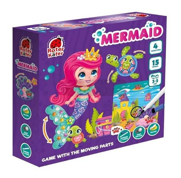 Zestaw zawiera plansze do gry z ruchomymi elementami i dodatkowe detale. Zamocuj te elementy za pomocą rzepów. Przykład: wybierz wizerunek syrenki i dołącz elementy garderoby wraz z akcesoriami. Rusz ogon!