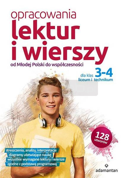 Książka zawiera opracowania lektur i wierszy dla klas 3-4 liceum i 3-5 technikum (po szkole podstawowej). Obejmuje 128 utworów, w tym wszystkie utwory obowiązkowe i uzupełniające, na poziom podstawowy i rozszerzony. Lista lektur i wierszy zgodna z podstawą programową. Uwzględnione standardy wymagań maturalnych. Streszczenia konkretne, zwięźle przedstawiona problematyka. Klarowna analiza i interpretacja wierszy. Kluczowe pojęcia, motywy, nawiązania do innych utworów. Opisana budowa utworów, omówione środki literackie idealne do szukania pomysłów na wypracowania, do powtórek przed sprawdzianem, do nauki przed maturą.