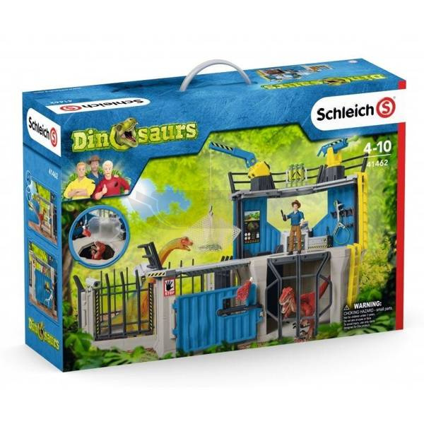 Duża Stacja Badawcza Dinozaurów 41462 to obietnica licznych przygód i świetnej zabawy! Głęboko w dżungli amazońskiej ukryta jest stacja badawcza, w której można wykonywać różne badania żyjących jeszcze dinozaurów. Team Dino, czyli 3 braci Colby: Maxx, Luis i Flynn, wyruszą na poszukiwanie tajemnic. Maxx, przywódca, ma mnóstwo pracy na dużej stacji badawczej. Na stacji znajduje się nie tylko centrala dowodzenia, lecz także platforma widokowa z ruchomą wyrzutnią strzałek usypiających oraz dźwig. Na dole znajduje się pomieszczenie kwarantanny dla świeżo złapanych dinozaurów. Tutaj przeprowadzane są pierwsze badania, a potem dinozaury wypuszczane są przez ruchome drzwi na wybieg. O nie! Welociraptor uciekł z wybiegu! Czy MAaxx zdoła go złapać, używając swojej broni z zaczepem? Zestaw zawiera liczne akcesoria oraz dwa dinozaury. Odkryj cały świat dinozaurów Schleich oraz niezwykłe przygody braci Colby!
