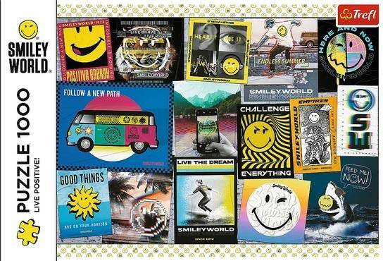 Żyj pozytywnie! - puzzle 1000 elementów to wspaniała układanka z serii Smiley World. Puzzle przedstawiają symbol szerokiego uśmiechu, który został uwieczniony na fotografiach i plakatach. Po ułożeniu powstanie obraz o wymiarach: 683 x 480 mm.