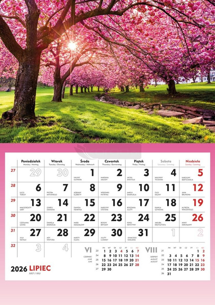 Kalendarz 2026 ścienny Kwitnące drzewa