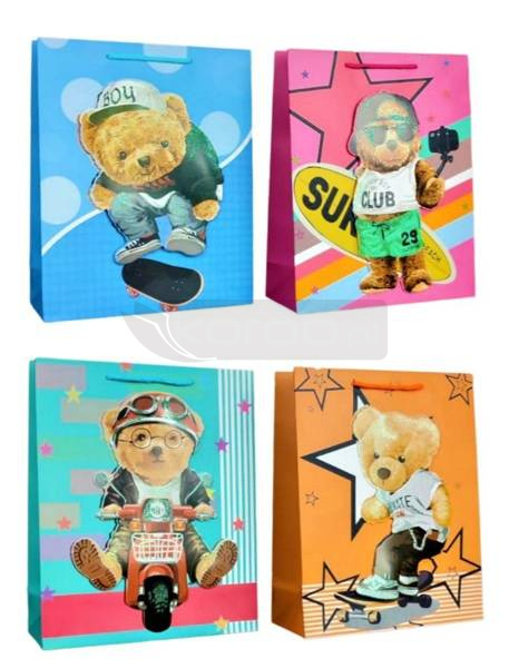 Torebka prezentowa L Miś 3D brokat